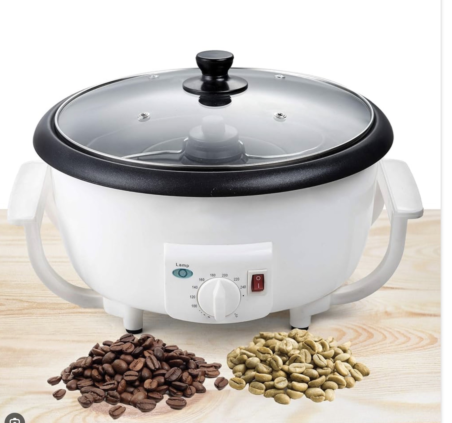 PROFESSIONAL DESIGN- Thermostat automatic constant temperature heating uniform mixing baking to ensure heating uniformity. HEAT RESISTANT TRANSPARENT COVER- See the heating process, the top four-hold ventilation system, so Shannon gas to diffuse your cafe. NON-STICK CHASSIS- Fast to clean safety, multifunctional fit for baking coffee beans, popcorn, nuts, peanuts.